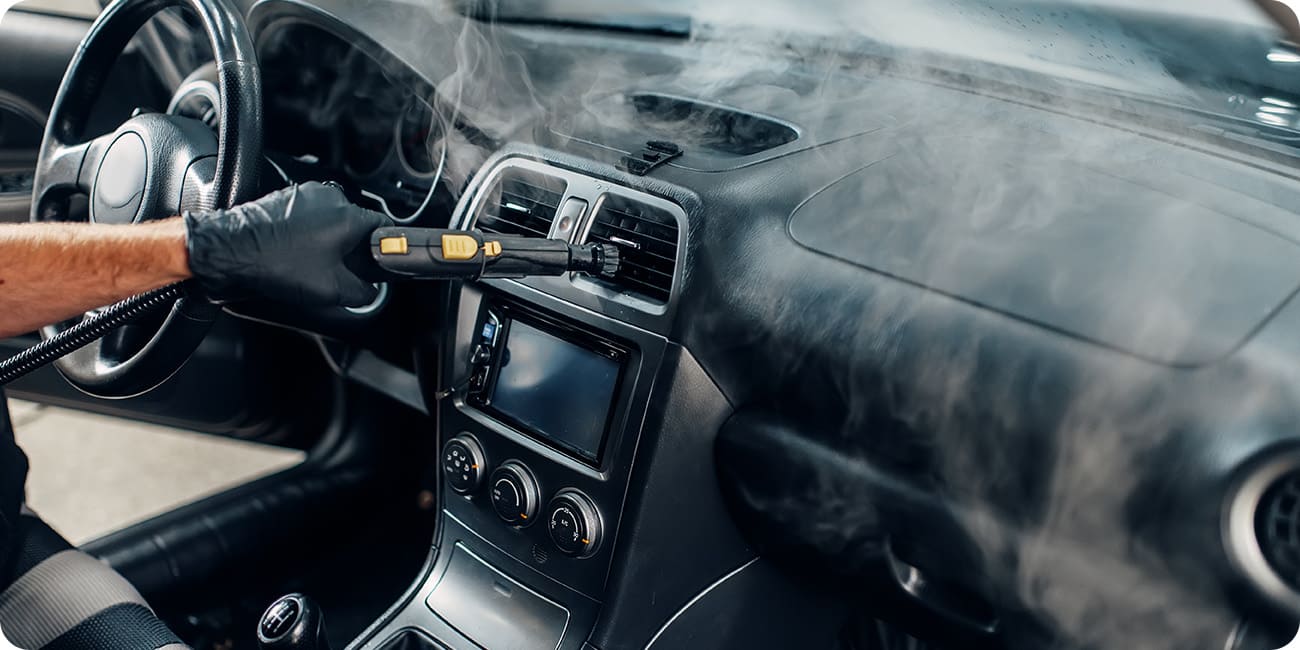 ルーフ、シート、フロア、ドア、ダッシュボード、コンソールに至るまで、ホコリ一つ残しません。通常のクリーニングでは落ちない汚れも取り除き、カビや菌、ダニ、臭いを根絶させます。タバコ臭やペット臭など、車内に染み付いた頑固な臭いもおまかせください。専用の機材と洗浄剤を使用し、清潔で快適な車内環境を提供します。