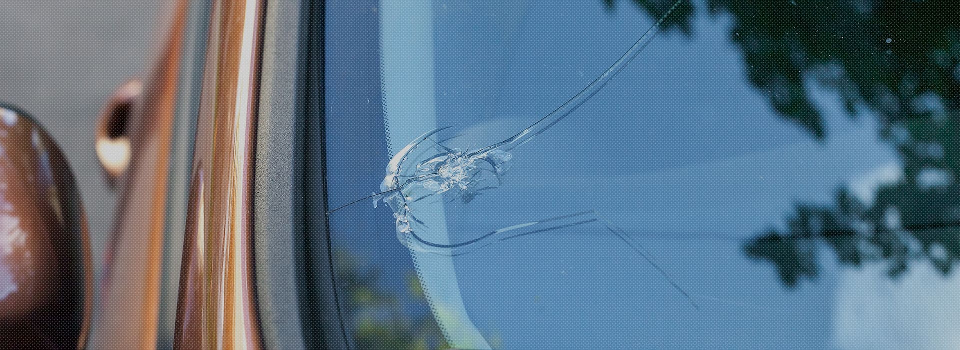 前方車が撒き上げた小石などがフロントガラスに当たって傷ついたり、場合によりひびが入ったりすることがあります。