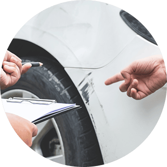 ・車で曲がるときに内輪差で壁にぶつかり、ドアとフェンダーが大きくへこんで傷ができた