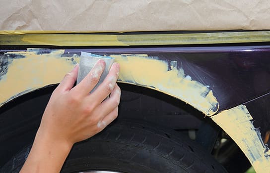 車に出来てしまった傷・ヘコミを、裏から叩いたり、引っ張ったり削ったりして形を整え、最後に塗装して直す事を板金塗装と言います。